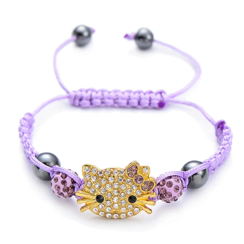 Ce bracelet à breloques pour filles est orné de têtes de chat en dessin animé, créant un look adorable et ludique.